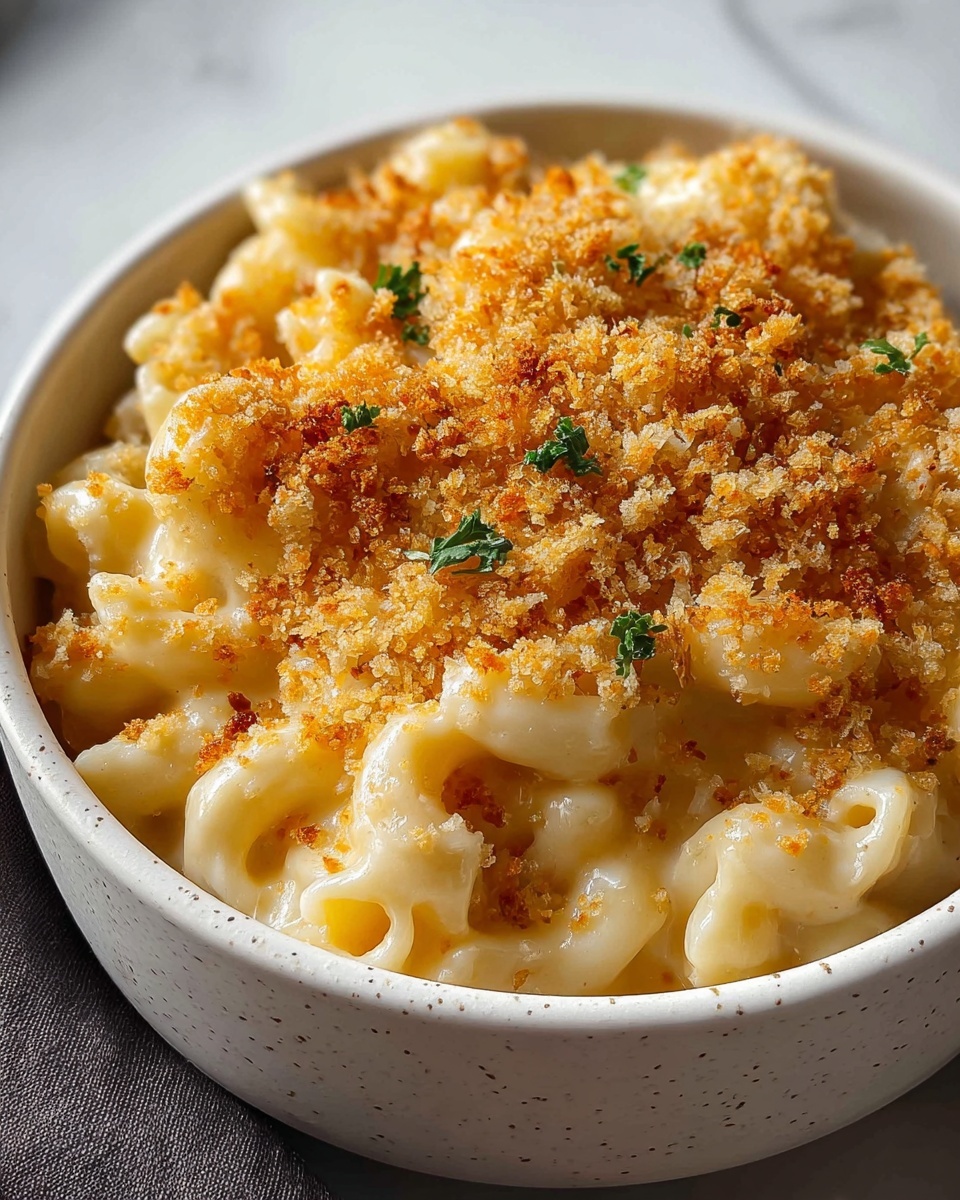 Try serving individual portions in ramekins topped with the breadcrumb crust for an elegant touch. You could also spoon the mac and cheese into bell pepper halves or mini casseroles for fun, shareable presentations that bring an instant wow factor to your table.