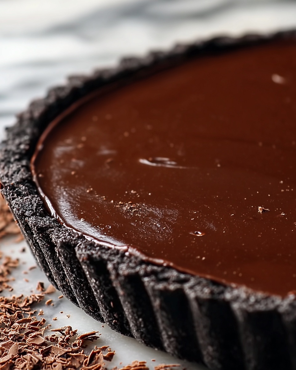 This pie shines beautifully on its own but pairs wonderfully with fresh berries or a bright fruit salad to cut through the chocolate’s richness. A cup of lightly brewed coffee or a glass of cold milk can also enhance the entire experience, making it a perfect end to any meal.