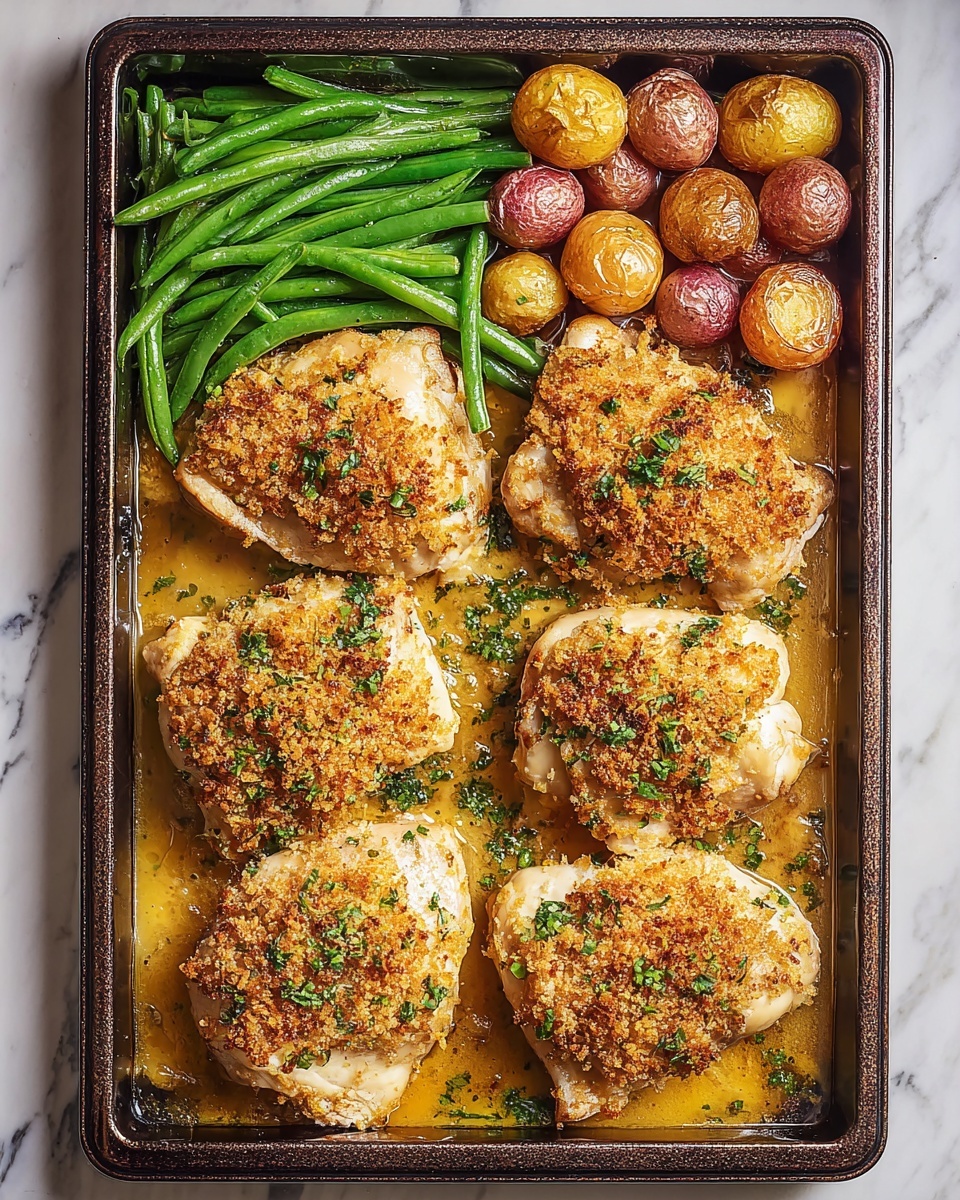 This sheet pan dinner is a complete meal, but if you want to pair it with something extra comforting, a creamy mashed potato or a simple buttered rice pilaf works wonderfully. They soak up the flavors from the chicken and veggies, making your meal even more satisfying.